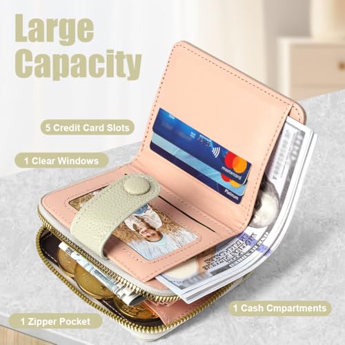 【Large Capacity Women’s Small Wallet】: There are 5 card slots, 1 cash pocket, 1 banknote compartment, 1 transparent photo window, 1 banknote compartment, and especially a separate spacious zipper coin pocket. This small wallet for women can meet almost all your storage needs, but save space.