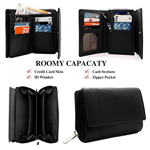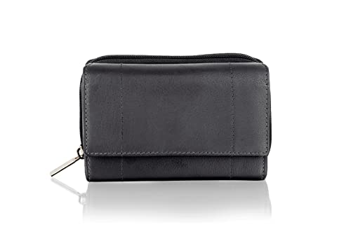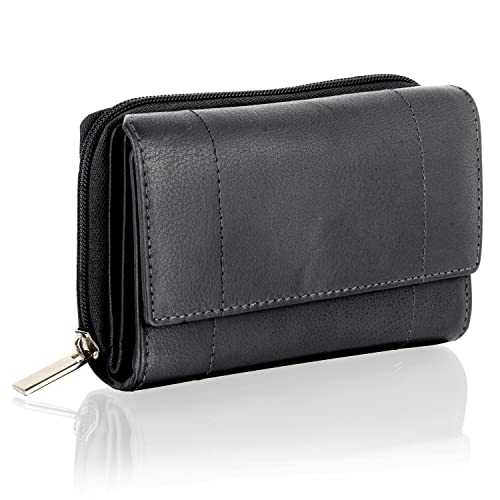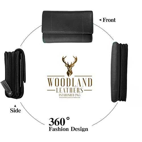 Woodland Leather Women’s Small Genuine Leather RFID Blocking Wallet with Zipper Pockets for Cards and Coins
