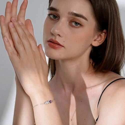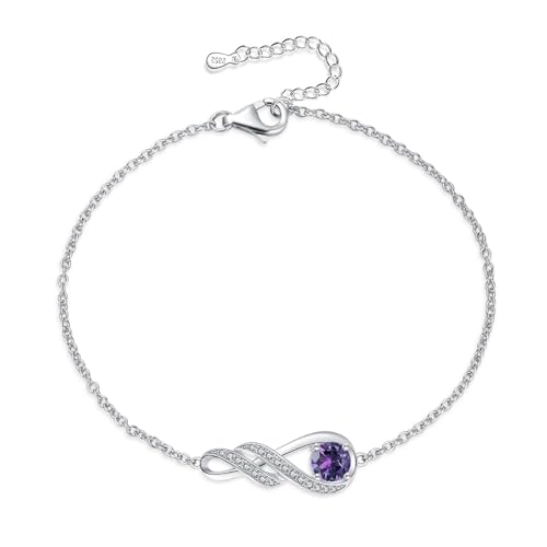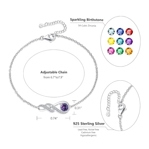 Birthstone Bracelets for Women Girls 925 Sterling Silver White Gold Infinity Pendant Anniversary Birthday Gifts Jewellery for Her, 6.7″+1.2″