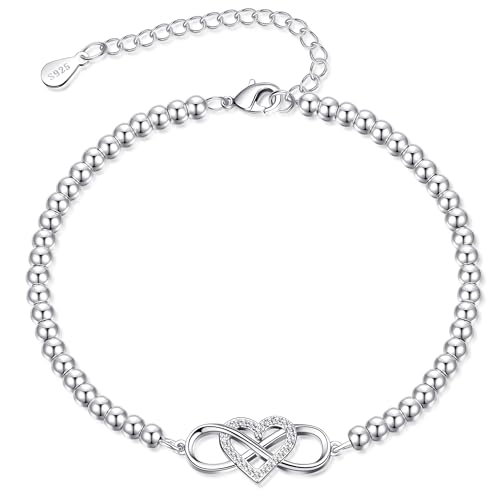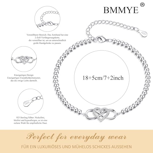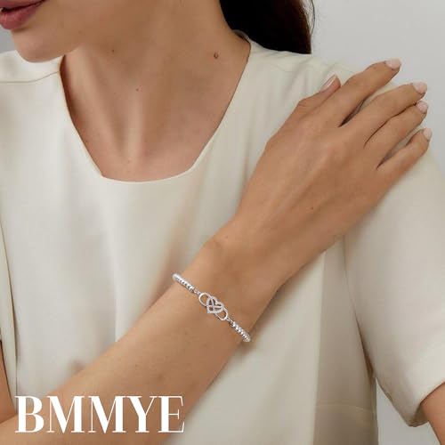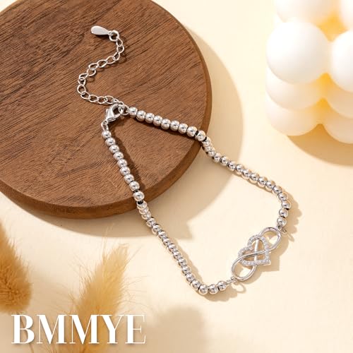BMMYE Silver Bracelet for Women,925 Infinity Bracelets with Cubic Zirconia Hypoallergenic Adjustable Sterling Silver Plated Bracelet,Sterling Silvery Beaded Bracelets with Cards for Women