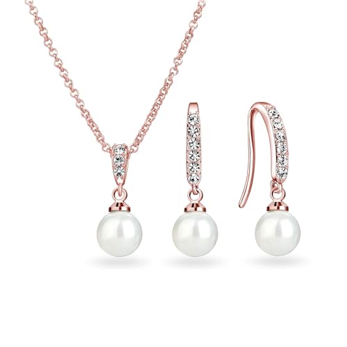 Philip Jones Rose Gold Plated Pearl Drop Set Created with Zircondia® Crystals