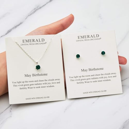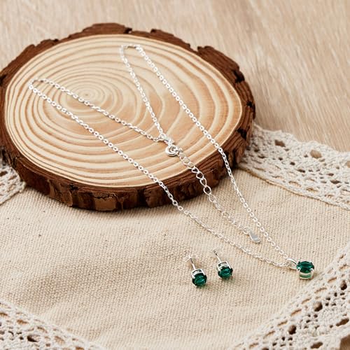 Philip Jones Sterling Silver May (Emerald) Birthstone Necklace & Earrings Set Created with Zircondia® Crystals