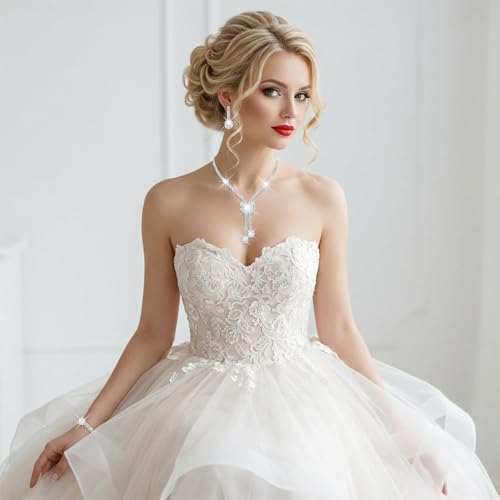 This silver jewellery set includes a silver necklace and earring set, perfect for wedding jewellery sets for brides. Crafted from rhinestone and alloy, this silver costume jewelry for women is both elegant and versatile.