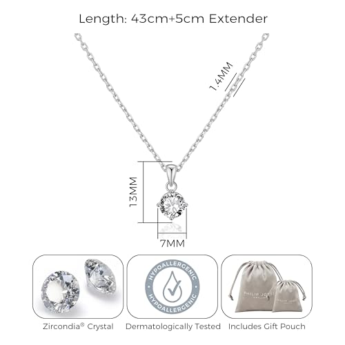 Philip Jones Silver Plated Solitaire Necklace Created with Zircondia® Crystals