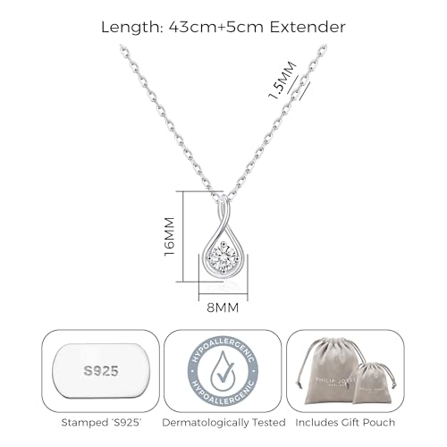 Philip Jones Sterling Silver Teardrop Twist Necklace Created with Zircondia® Crystals
