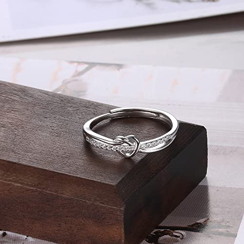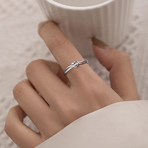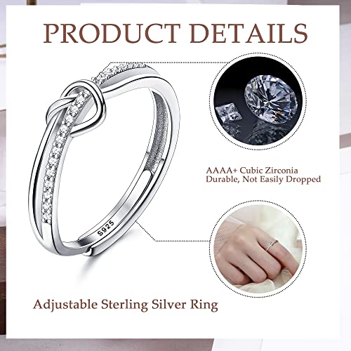 ADRAMATA 925 Sterling Silver Rings for Women, Adjustable Knot Silver Ring with Cubic Zirconia, Engagement Ring, Sterling Silver Promise Ring Jewellry