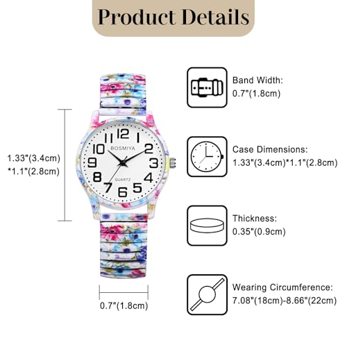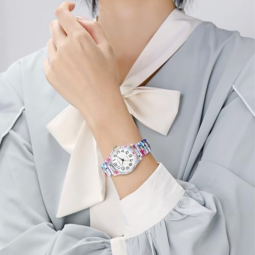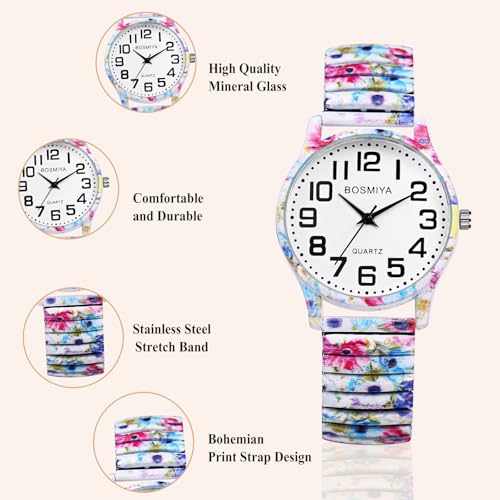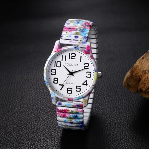 Oidea Women’s Easy Reader Watch: Bohemian Print Elastic Strap Watches for Women Retractable Stretch Band Wrist Watch Analog Quartz Casual Business Ladies Wristwatch
