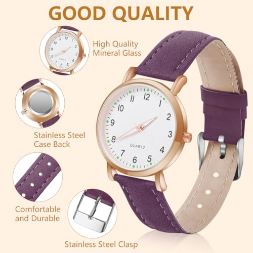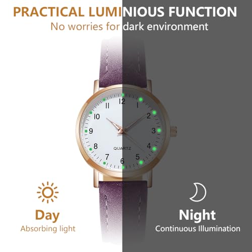 Women’s Leather Quartz Watch, Frosted Leather Strap Ladies Watches, Analog Quartz with Watches Night Light Dial, 3 Hand Quartz Watch, Premium Fashion Wrist Watch for Women Ladies Girls