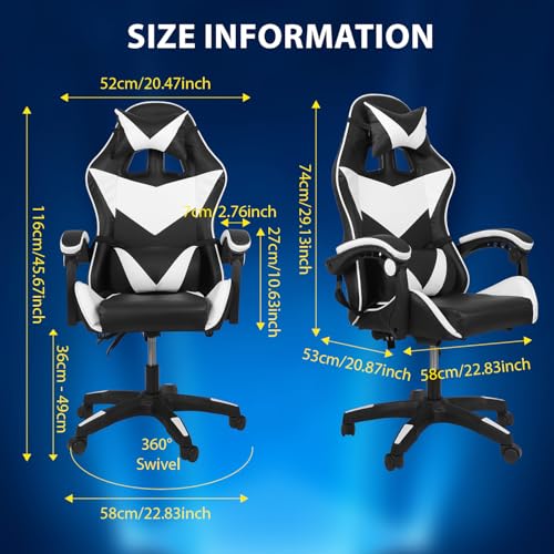 Be the first to review “Gaming Chair, Computer Chair with Lumbar Cushion, Headrest, Height-Adjustable Office Chair Gaming Chair for Adults, Girls, Boys (Without Footrest, Black+White)”