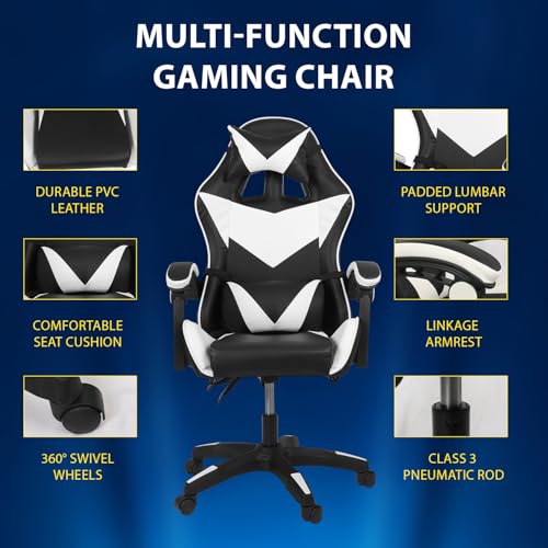 Gaming Chair, Computer Chair with Lumbar Cushion, Headrest, Height-Adjustable Office Chair Gaming Chair for Adults, Girls, Boys (Without Footrest, Black+White)