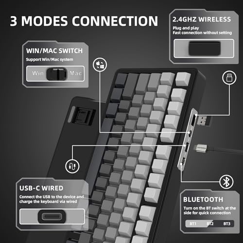 【Triple Connection Modes & Multi-Device Tasking】X85 supports Bluetooth or 2.4Ghz for wireless connectivity,or with the USB-C cable.With Bluetooth,the keyboard responses faster and save more power than the former Bluetooth versions.It is also easily switched among the three modes for efficient multitasking.Included 5000mAh battery ensures a long use.Compatible with Win/Mac system.