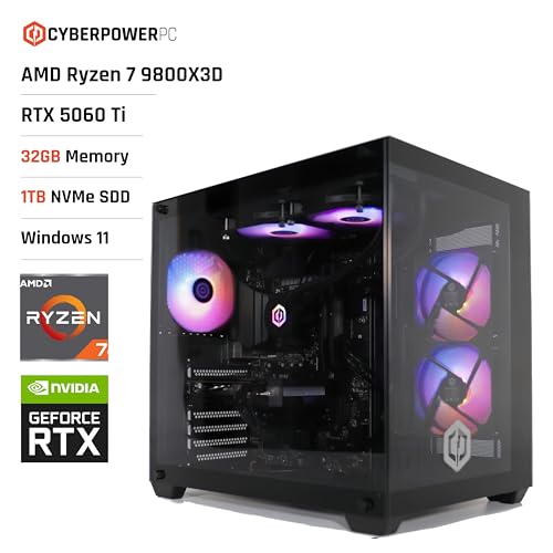 CyberPowerPC Luxe Gaming PC – AMD Ryzen 7 9800X3D, Nvidia RTX 5060 Ti 8GB, 32GB RAM, 1TB NVMe SSD, 650W 80+ PSU, Wi-Fi, Liquid Cooling, Windows 11, Ark RGB