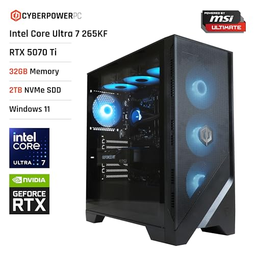 CyberPowerPC x MSI PBM Gaming PC – Intel Core Ultra 265KF, Nvidia RTX 5070 Ti 16GB, 32GB RAM, 2TB NVMe SSD, 850W 80+ PSU, Wi-Fi, Liquid Cooling, Windows 11, Forge 320R Airflow