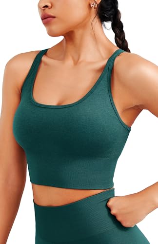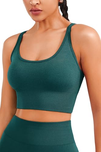 JOYSPELS Women’s Seamless Longline Sports Bra – Slim Strap 4-Way Stretch Yoga Top with Removable Pads for Gym, Workouts, Running