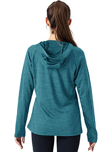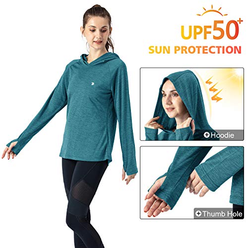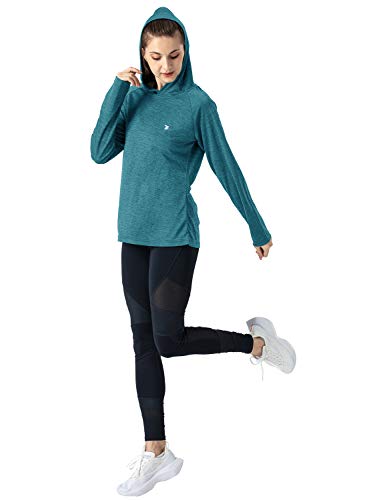 Women’s Long Sleeve Sports Running Hoodie Tops Shirts with Thumb Hole,UPF 50+ Sun Protect Breathable Quick-Dry Fitness T-Shirt Tops for Workout Gym Training Yoga Pilates