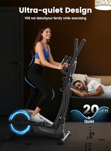 Elliptical Cross Trainer For Home, Ultra Quiet Magnetic Cross Trainer with 16-Level Resistance, 8KG Flywheel, 42cm Stride, Weight Capacity 150KG, App Compatible with LCD Monitor, Pulse Sensor