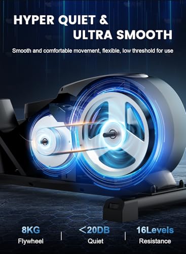 【Ultra-quiet& Smooth】Equipped with a precision-balanced 8KG flywheel and a magnetic resistance system, the cross trainer is quieter than friction resistance systems, making it suitable for use in homes and offices without disturbing others. It runs ultra-quietly, providing a smooth and uninterrupted workout experience.