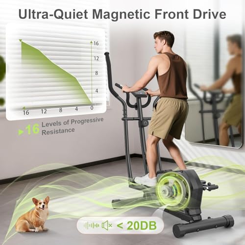 Cross Trainer for Home, 16 Levels Magnetic Resistance Cross Trainers, Ultra-Quite Elliptical Machine Fitness with LCD Monitor, Pulse Sensor, Bottle Holder, Weight Capacity 130KG