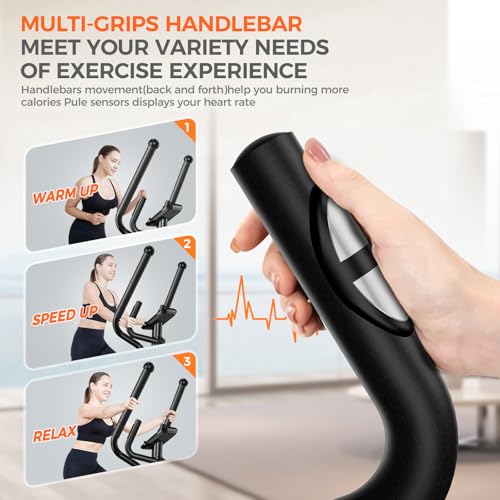 【Ergonomic Design with Perfect Stride & High Weight Capacity】 Experience unparalleled comfort and inclusivity. The 15.5-inch stride length is scientifically designed to mimic the body’s natural movement, reducing joint impact for Senioren and Rehabilitanden. This elliptical cross trainer for home accommodates users up to 6 feet 5 inches tall. Coupled with the ultra-stable, thickened steel frame that supports up to 350 lbs, it offers a secure and effective workout for a diverse range of users, from Fitnessbegeisterte to larger individuals, ensuring everyone can achieve their fitness goals safely at home.