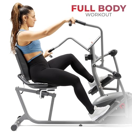 Sunny Health & Fitness Smart Recumbent Bike, Full-Body Home Training with Arm/Leg Exercisers, Indoor Cycling Workout Machine Plus Adjustable Seat & Bulit-in Pulse Sensors, Free SunnyFit App Connection