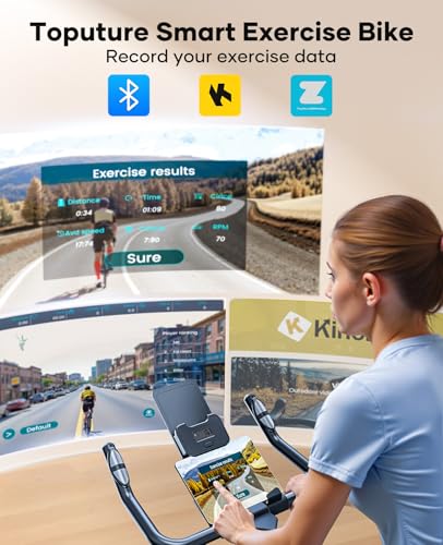 ✅ 【Smart APP-Enabled Exercise Bike】The Toputure bike connects via Bluetooth to APP:Zwift and Kinomap, unlocking realistic cycling simulations, multiplayer modes, and personalized training plans.
