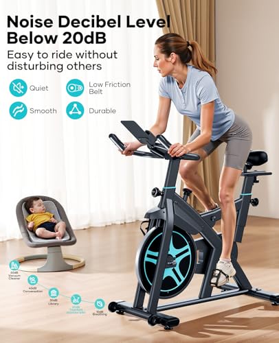✅ 【Super-Quiet Magnetic Resistance & 15kg Flywheel Spin bike】 Equipped with a 15kg flywheel and a silent magnetic braking system, the bike delivers 100% precise and adjustable resistance control, Suitable for simple workouts to competitive cycling intensity. Advanced magnetic materials ensure frictionless, whisper-quiet operation(Noise