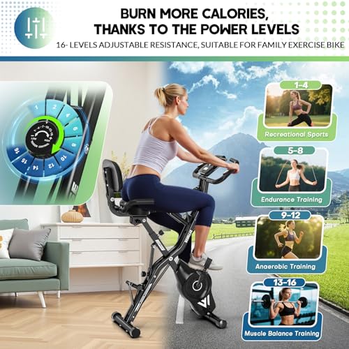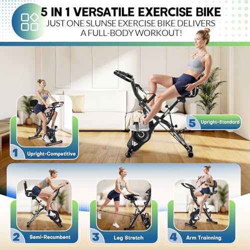 Exercise Bike for Home, SLUNSE 5 IN 1 Indoor Workout Bike,16-Level Magnetic Resistance Folding Stationary Exercise Bike, 350LBS Capacity and Comfortable Seat Cushion
