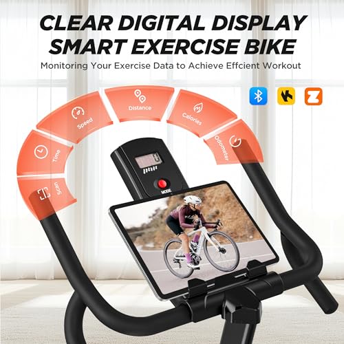 Exercise Bike with Bluetooth: Advamsoler upgraded fitness bike can connect via Bluetooth. It is compatibles with Kinomap and Zwift fitness apps. This allows you to track your workout data such as time, speed, distance, odometer and calories. You can set goals, and monitor real-time performance data.