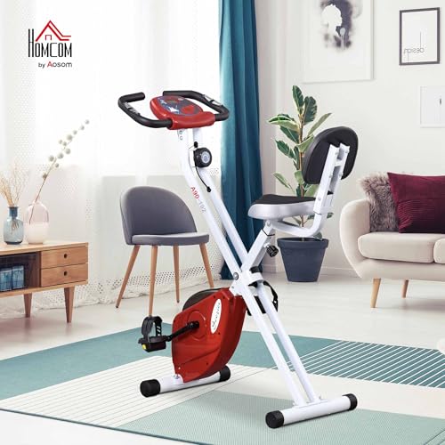 HOMCOM Folding Exercise Bike, Fitness Bicycle Indoor Trainer, Quiet 8-Level Magnetic Resistance, with LCD Monitor, Pulse Sensor and Wheels for Sport Maison and Cardio Training