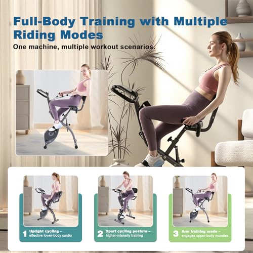 Folding Exercise Bike with 16-Level Magnetic Resistance Upright & Recumbent 2-in-1 Design Foldable Home Workout Bike with APP Connectivity for Tracking & Training Compact Stationary Fitness Bike