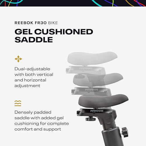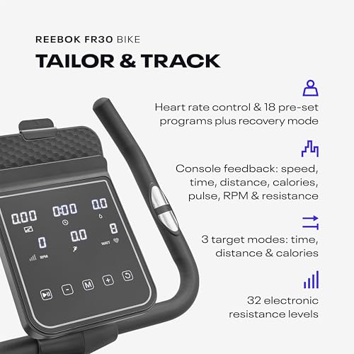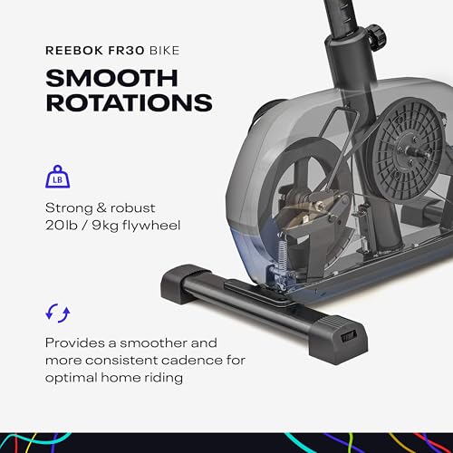 Reebok FR30 Upright Exercise Bike for Home Use Stationary Bike Fitness Equipment Cardio Machine with LED Touchscreen, Tablet Holder, Bluetooth, Kinomap Zwift Apps, 32 Quiet Magnetic Resistance Levels