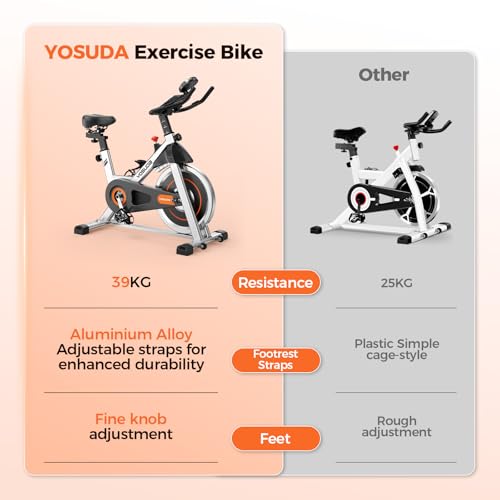 💪【𝟖𝟓 𝐥𝐛𝐬 𝐇𝐞𝐚𝐯𝐲 𝐑𝐞𝐬𝐢𝐬𝐭𝐚𝐧𝐜𝐞 – 𝐅𝐫𝐨𝐦 𝐄𝐚𝐬𝐲 𝐑𝐢𝐝𝐞𝐬 𝐭𝐨 𝐈𝐧𝐭𝐞𝐧𝐬𝐞 𝐂𝐥𝐢𝐦𝐛𝐬】Equipped with a 85 lbs (38.5 kg) professional resistance system, the YOSUDA stationary bike covers everything from light warm-ups to intense climbs. The smooth resistance knob allows precise adjustments so beginners and pros alike can find the perfect intensity for every ride, whether relaxing at home or doing high-intensity climbs in the living room.
