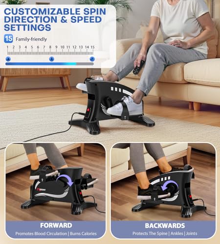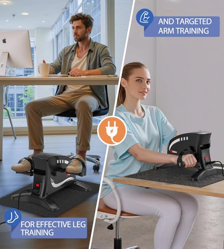 【Multi-Functional Pedal Exerciser】: This electric pedal exerciser is designed for effective and convenient home workouts. When plugged in, use the remote control to easily adjust resistance levels, speed, and direction for a customized low-impact exercise session. It targets both upper and lower body muscles—strengthening arms, legs, and core while improving joint mobility and blood circulation. Ideal for rehabilitation, general fitness, and active recovery, it offers a safe and efficient way to stay active at home.