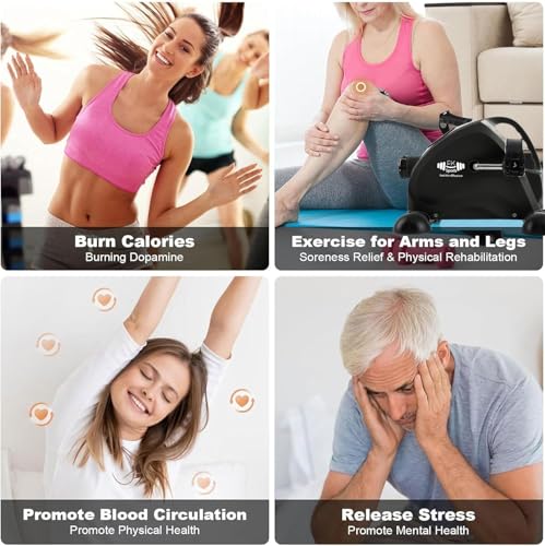 Portable Exercise Tool: Mini exercise pedal bike has a small and lightweight design that allows you to take it on excursions, and effortlessly transfer it from room to space or out. It can also be put away in a variety of places, such as under your desk, which means you can work out while working.