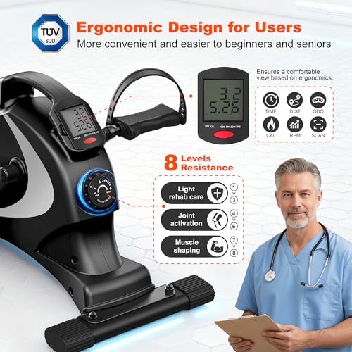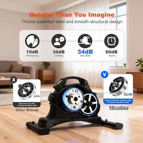 Niceday Mini Exercise Bike, Foot Pedal Exerciser, Under Desk Bike, Desk Pedal Bike, 8 Magnetic Levels Resistance, Quiet and Smooth Pedal Machine for Arms Legs, Workout Equipment for Home Office