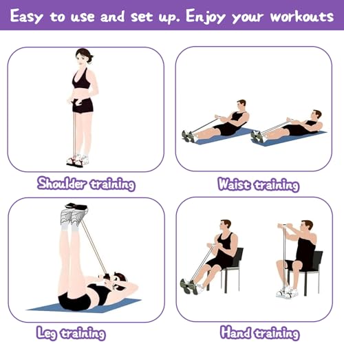 Core Strength and Full-Body Workout: This 4-tube foot pedal resistance band is designed to enhance your core strength and provide a full-body workout; Ideal for sit up exercises, leg workouts, and abdominal training, it targets multiple muscle groups for a comprehensive fitness routine