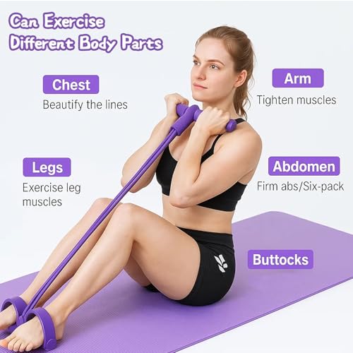 Sit up Exercise Equipment, Exercise Equipment for Home Use, 4-Tube Elastic Pull Rope Foot Pedal Resistance Bands for Women and Men, Abdominal Waist and Leg Exerciser, Fitness Equipment for Home Gym