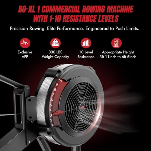 Branx Fitness RO-XL 1 Commercial Rowing Machine | 1–10 Air Resistance Levels | Ergonomic Seat & Handlebar | 330 LBS Capacity | App-Compatible Rower for Home & Gym | Foldable with Bluetooth Monitor.