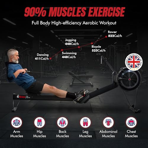 10-Level Air Resistance – From HIIT to Recovery: This air resistance rowing machine adapts to your workout with 10 smooth levels—ideal for interval sessions, endurance training, or recovery rows. Whether you’re a beginner or athlete, this adjustable resistance rower fits your pace. It’s the best rowing machine for home gyms, and doubles as a quiet rowing machine for weight loss, full-body workouts, and daily cardio. A true crossfit rower machine.