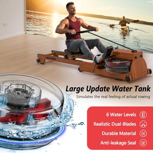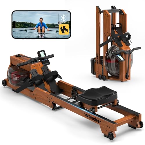 Foldable Water Rowing Machine Wooden with LCD Monitor, Bluetooth Compatible, Easy Assembly for Home Gym Workouts