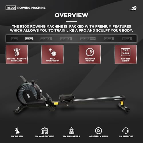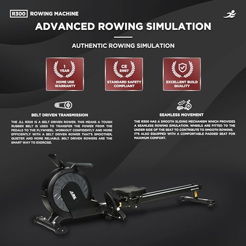 【Belt Driven System】The JLL R300 Rowing Machine features a belt-driven mechanism for a quiet and smooth rowing experience.