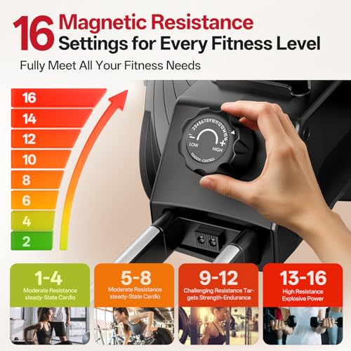 ULTRA-QUIET MAGNETIC RESISTANCE– Noise-Free Home Workouts: Featuring a high-quality flywheel and 16-level magnetic resistance, the MR19 Rowing Machine operates almost silently—perfect for apartments. Adjust intensity effortlessly with the knob control, from light (Levels 1-8 for beginners/women) to challenging (Levels 9-16 for advanced/men). No distractions, just effective rowing anytime.