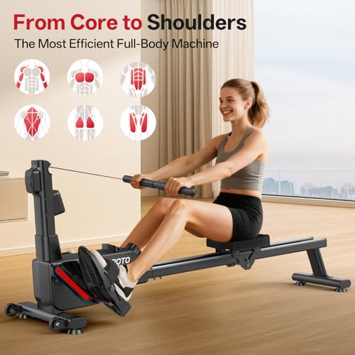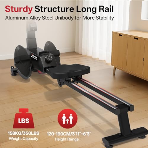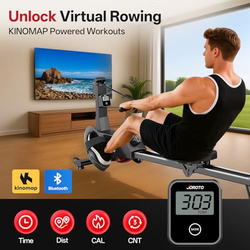 JOROTO Rowing Machine for Home, 16 Resistance Levels, Ultra-Quiet Magnetic Rowing Machine with Kinomap App, Double Rails for Extra Stability & Smoothness, Compact & Easy to Assemble for Home Fitness