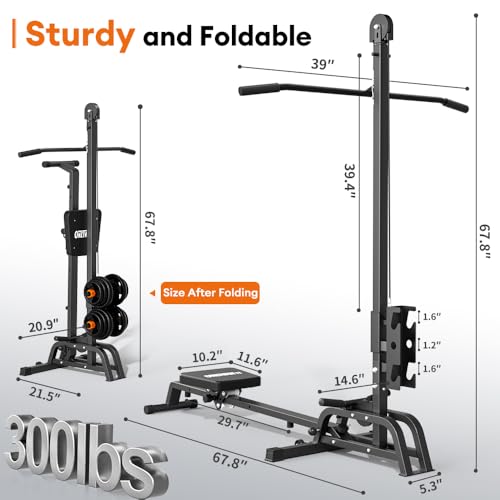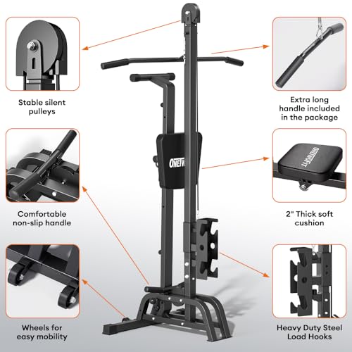 ONETWOFIT Foldable Rowing Machine & LAT Pull Down Machine 2 in 1 Multi-function Compact Rowing Machine for Home, Low Row Cable Fitness Exercise Max 300lbs OT060901