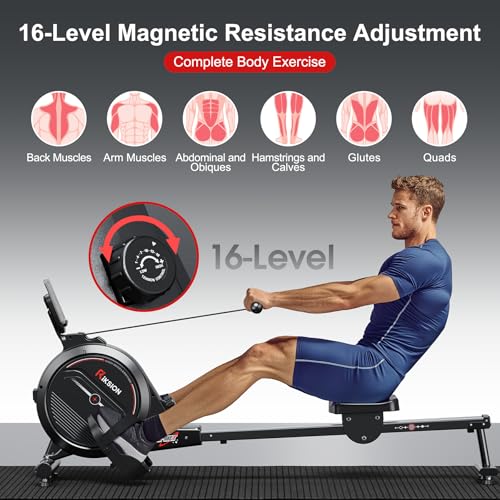 Rowing Machine Magnetic Foldable, Fitness Exerciser Indoor Equipment for Home Gym Use, Cardio Training Machine,350LB Capacity with LCD Monitor