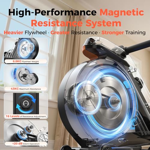 YOSUDA Rowing Machine for Home Gym, Upgrade Magnetic Rowing Machines with 16 Levels Quiet Resistance-160kg /181kg Weight Capacity, Foldable Rower with LCD Monitor, Comfortable Seat & APP Supported