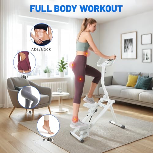 Stair Stepper for Home Gym, Adjustable Stair Climber with 3 Level Resistance & 4 Level Height, LCD Display & Phone Holder, Compact Foldable Stair Master for a Full-Body Cardio Workout