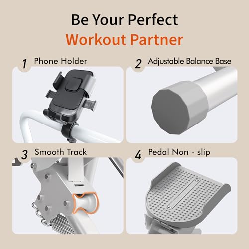 [Adjustable Handle with Phone Holder] The machine’s handrail supports three height adjustments-48IN, 51 IN, and 53 IN, accommodating different heights and exercise habits, making it easy to find a comfortable and efficient workout position. The adjustable handle is equipped with a phone holder, allowing you to conveniently place your phone while exercising.