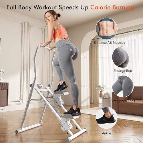 [Stair Stepper for Full-Body Workout ] The vertical climber simulates natural climbing movements, helping to exercise core muscles effectively. It can effectively target multiple areas such as the buttocks, waist, legs, ab and back, providing an efficient full-body workout experience. Whether you are a beginner or an experienced fitness enthusiast, it can help you burn more calories in a shorter amount of time.