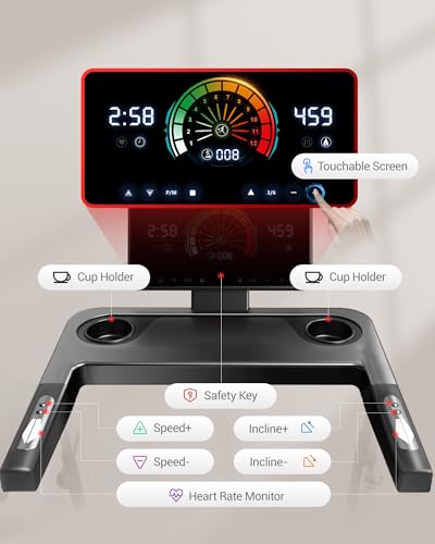 Intelligent Touch Screen: The foldable treadmill features a large touch screen that displays speed, time, distance, incline, calories, and heart rate. The displayed data rotates every 5 seconds. When you need to adjust the mode, you can also operate directly on the screen. The LONTEK treadmill brings you a unique and technological running experience